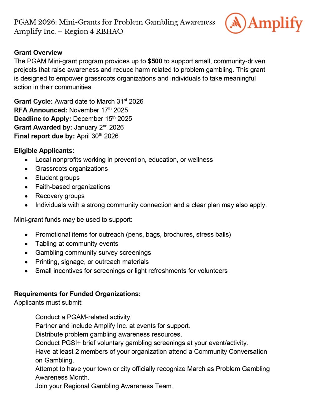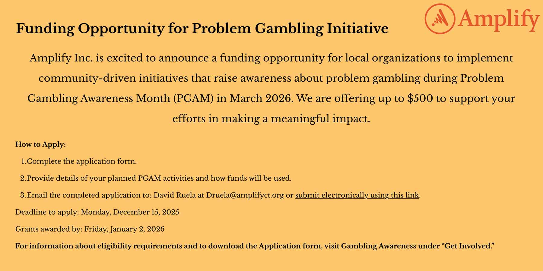 Amplify provides leadership for a team of consumers and professionals to raise awareness about problem gambling and connect them with resources that help.